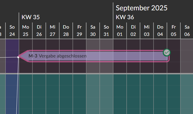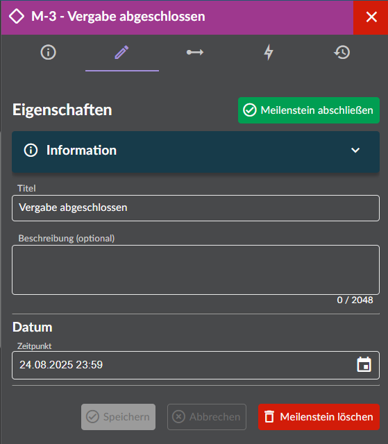 Analog zu den Aufgaben, können nun auch Meilensteine abgeschlossen werden.